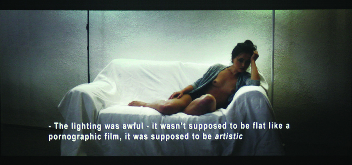 Three photogaphs of digital projections. Photos by Rusch Media for Rusch Media. Photo posed by model, further details on request. August 2015